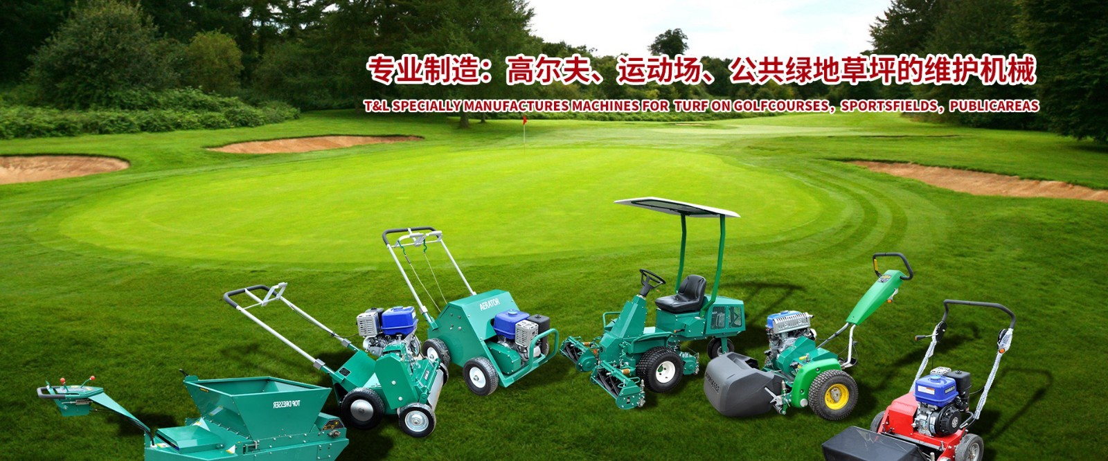 興化市臺(tái)林機(jī)械有限公司,是一家研發(fā)與制造并重的生產(chǎn)企業(yè)。專業(yè)生產(chǎn)面向高爾夫球場、足球場及公共綠地的草坪維護(hù)機(jī)械。產(chǎn)品有:三聯(lián)滾刀式剪草機(jī)、果嶺機(jī)、氣墊機(jī)、草坪修邊機(jī)、梳草切根機(jī)、打孔機(jī)、施肥機(jī)、倒磨機(jī)、滾刀磨床、底刀磨床以及研磨膏等。 T&L develops and manufactures machines for the turf on golfcourses,sportsfields,publicareas. Specially manufactures reelmowers,greenmowers,hovermowers,edgers,verticutters,aerators,spreaders,lappers,reelgrinders and bedgrinders.